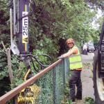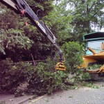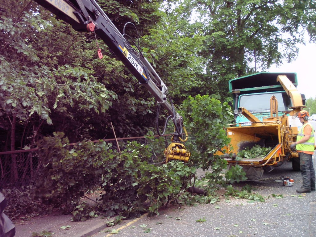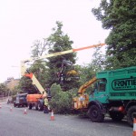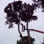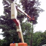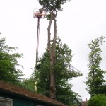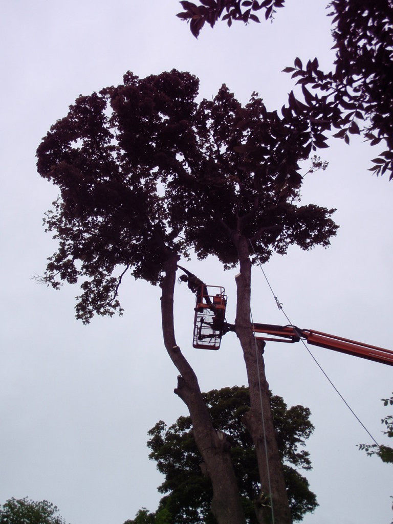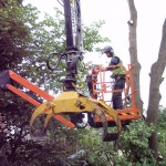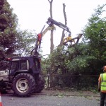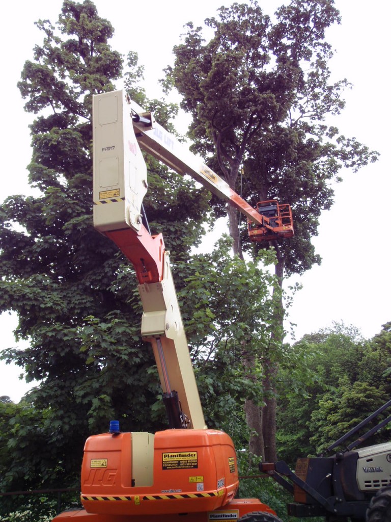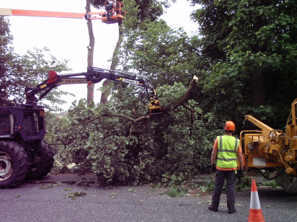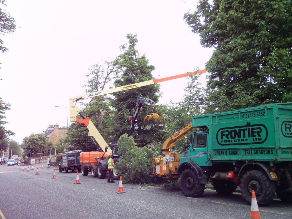 It dropped a large primary limb on the public road. With this history of failure our client was keen to have the tree removed. We notified the council of tree work within the Conservation Area. We had to gain a Road Occupation Permit from Edinburgh Council, arrange formal traffic management with Contraflow Ltd and bring in the crane and the MEWP. Thankfully everything went to plan and all of the arisings were removed off site for recycling.