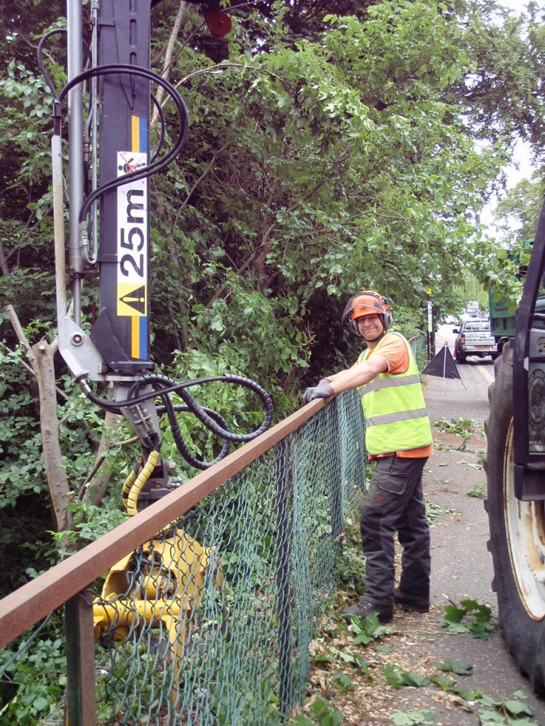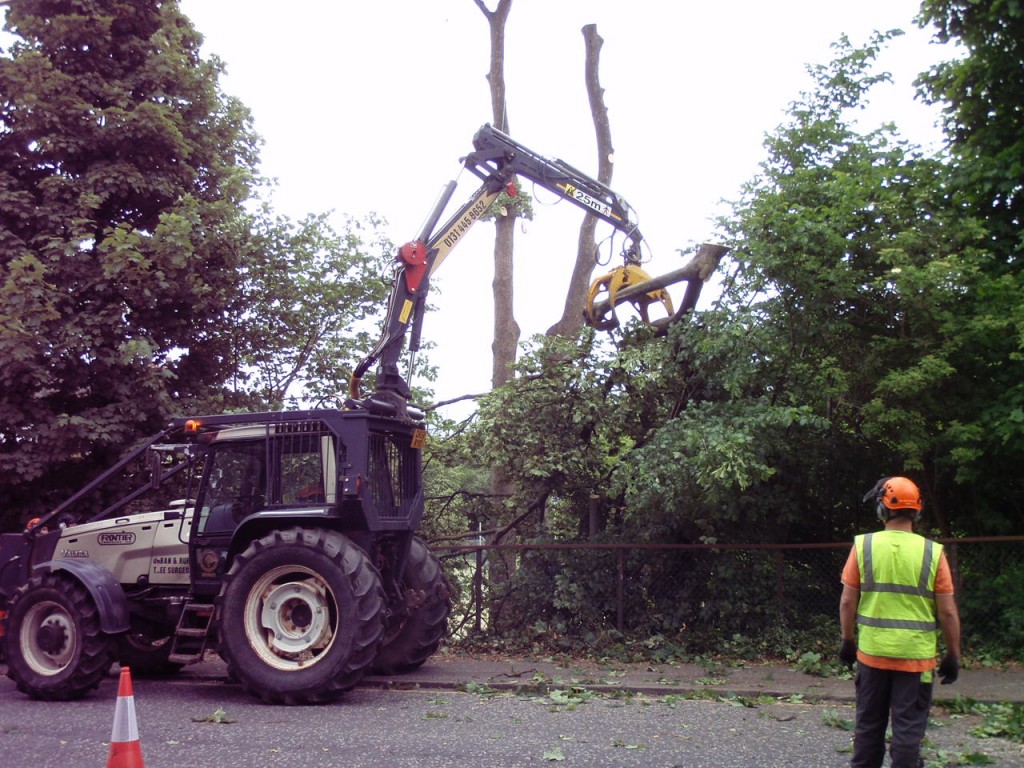 Here are some photos of Frontier removing a large Beech tree overhanging Station Road. The tree was dead and there was evidence of extensive Giant Polypore (Meripilus giganteus) at the base. This is an aggressive wood decay fungus which tends to rot the structural roots and butt and most often renders the tree unsafe. A work platform was used as the tree was unsafe to climb. Traffic management was undertaken by Class One Traffic Management Ltd. Six operatives were onsite together with a Lorry Crane which created plenty of local interest. A good job done!