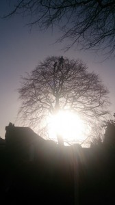 December 2014 - Two of our climbers high in crown undertaking a careful reduction of a Beech in Morningside during the 'weather bomb'!